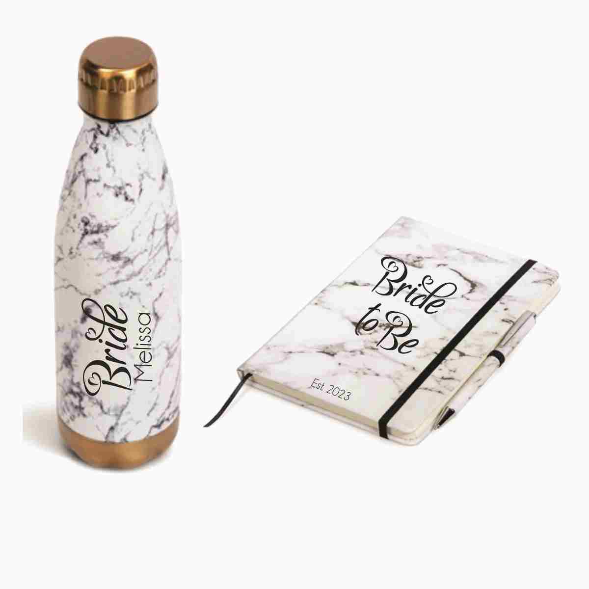 Marble Gift Set with custom artwork. 500 ml double wall bottle, A5 notebook and pen.